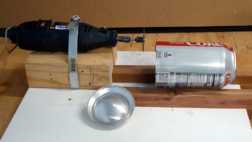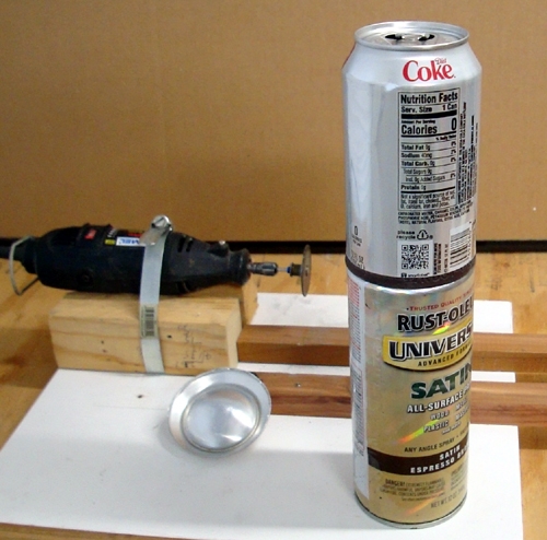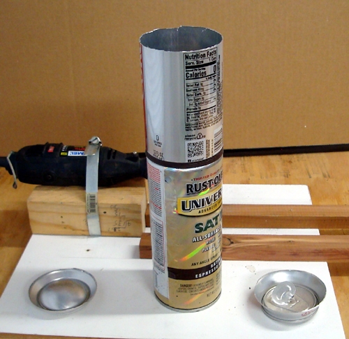 This gives me a stable way to hold the Cans as I cut the Tops off.