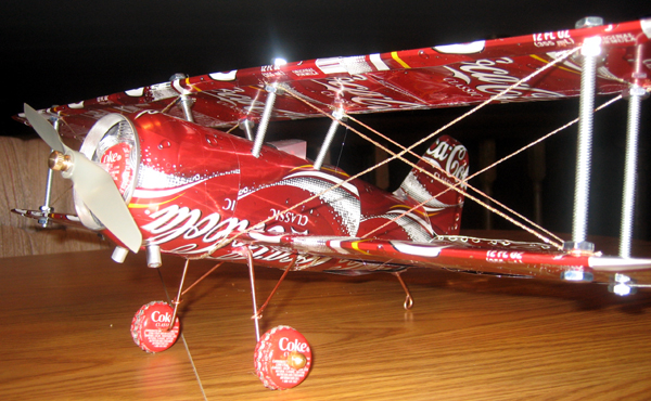 Classic Biplane - built by Tom and Jeff Mazzone. Tom writes, "Thanks for a great father and son project. I'll never look at a soda or beer can the same again!"