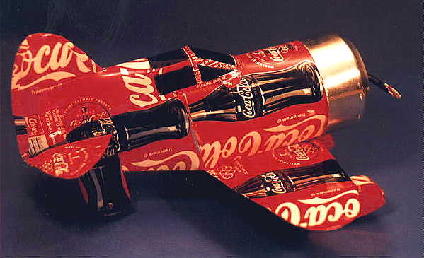 Al writes, "I have been Flying over 33 years now. So far I've built 5 models. I have found empty cereal boxes also make good construction material and copied this GEE-BEE using a Kellogg's Frosted Flake Cereal Box but I prefer the aluminum cans for their ability to last 100 years."